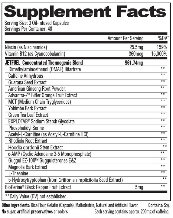 Termogénico en cápsulas que ayuda a elevar el gasto calórico, mejorar la energía diaria y apoyar el control del apetito. Útil en programas de reducción de grasa junto con dieta y ejercicio. Contiene estimulantes (cafeína); evita su uso por la noche y no combines con otros estimulantes. Frasco con 144 cápsulas.
