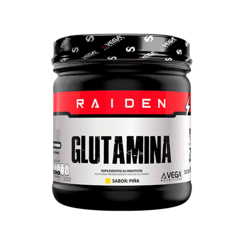 Suplemento de glutamina pura. Disponible en sabores Uva y Piña.